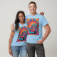 This a Men's Off Duty Teacher Psychedelic Recliner T-Shirt. The recliner design was created with generative art. The artwork features a colourful psychedelic recliner with a psychedelic background. The t-shirt shown is a light blue colour. Off Duty Teacher is on the bottom of the image in gold text. You can change the text by clicking the Personalise button. The t-shirt is unisex sizing. The shirt is made of 100% cotton.