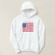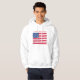 Men's basic pullover hoodie is shown in white with a patriotic USA Flag graphic print, perfect for July 4th holiday or any other patriotic moment, this hoodie is made of quality materials and craftsmanship and is available in more colours.