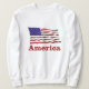 Men's basic pullover sweatshirt is shown in white with a patriotic USA Flag graphic print, perfect for July 4th holiday or any other patriotic moment, this sweatshirt is made of quality materials and craftsmanship and is available in more colours. Customise to your size, colours, add text to your liking; Or buy as is.