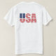 Men's popular t-shirt is shown in white with a USA Flag graphic print, perfect for July 4th holiday or any other patriotic moment, this t-shirt is made of quality materials and craftsmanship and is available in more colours. The graphic print is shown on the back.