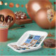 Cool custom birthday party paper plates with a 6 photo template collage of a man and his name on the blue squares next to fun balloons. Cute personalised Happy Birthday decor for a boy or teen.