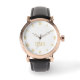 Create your own custom, personalised, elegant faux gold monogrammed on white dial, stylish cool unique classy mens rose gold retro vintage classic look style black leather strap watch. Simply type in your name / monogram / initials, to customise. Makes a great gift, for birthday, graduation, fathers day, christmas, holidays, wedding, marriage anniversary, valentines day, and more, for your loved ones, brother, son, dad, husband, boyfriend, groom, groomsmen, best man, grandpa, family and friends.
