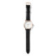 Mens Rose Gold Monogrammed Black Leather Strap Watch