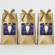 Mens royal blue and gold birthday party stickers with royal blue tuxedo with gold bow tie, gold vest and gold pocket square. These royal blue and gold birthday party favour stickers are easily personalised for your event by changing the text as needed. These tuxedo gift tags are great for corporate events, retirements, bachelor parties, and any black tie or formal event.