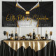 Mens black and gold birthday party banner with black tuxedo, black and gold bowtie, black and gold vest. This men's black and gold birthday party banner is easily personalised for your event by changing the text as needed. This tuxedo party and event banner works well for corporate events, retirements, bachelor parties and any black tie formal event. Ad your text, logo, images, etc., to personalise.