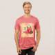 This is a Men's Women Dancing Triblend T-Shirt. The dance design was created with generative art. The art features three women dancing on a yellow and peach background. The t-shirt is a red triblend t-shirt. You can change the image with the Personalise button.