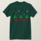 A basic Bella Canvas shirt for men shown in Forest Green with crew neck, short sleeves, cotton along with rustic looking Green fir trees and big bold Red text of Yellowstone and some snowflakes in White for fun. Customise of buy as is. T-shirts, shirts, apparel, fashions, holiday, lodge, men's.