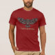 A basic Bella Canvas shirt for men shown in cranberry red colour with crew neck, short sleeves, shown with a art print of a Owl with big bold text of Yellowstone.