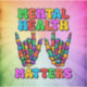"Mental Health Matters" features the words " mental health matters" in colorful text and skeleton hands. mental health is always important to every human.