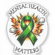 Sticker to help spread awareness for mental health awareness. A pop art comic style green awareness ribbon with the quote, "Mental health matters."