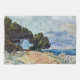 Menton Seen from Cap Martin (1884) by Claude Monet is a vintage impressionist fine art seascape painting. Trees, the ocean and the coastal shoreline are in the foreground with the town and mountains in the background. A sunny day with some fluffy clouds in the sky. A view of the city of Menton in the south of France from the coast of Cap Martin.