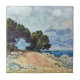 Menton Seen from Cap Martin (1884) by Claude Monet is a vintage impressionist fine art seascape painting. Trees, the ocean and the coastal shoreline are in the foreground with the town and mountains in the background. A sunny day with some fluffy clouds in the sky. A view of the city of Menton in the south of France from the coast of Cap Martin.