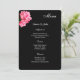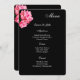 This Menu Card template is shown on basic paper in black with a pink rose print. Bride and Groom's names commemorate your event. Script and standard text in white. Customise your names and menu items by clicking customise button, look to right and find appropriate boxes to change to your information. Wishing you best wishes for your Wedding Day.