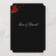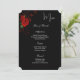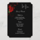 This Menu Card template is shown on basic paper in black with a lovely red rose print design. Script and standard text in white.