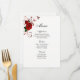 Menu Card is shown on the basic paper in white with a lovely red rose print design. Script and standard text in a black colour.