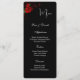 This Menu Card template is shown on the basic paper in black with a lovely red rose print design. Script and standard text in a white colour.