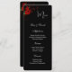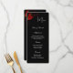 This Menu Card template is shown on the basic paper in black with a lovely red rose print design. Script and standard text in a white colour.