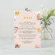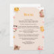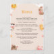 This adorable baby shower Menu features a charming farm animal theme with cute illustrations of a cow, bunny, chick, horse, and pig, surrounded by cheerful flowers and a smiling sun. The soft pastel colours and whimsical design create a warm and inviting atmosphere. Visit our shop to view our entire Brown Cute Farm Animal collection.