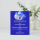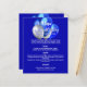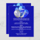 A royal blue background. White text. Decorated with blue and silver balloons.