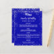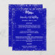 A royal blue background. White text. Decorated with faux silver glitter, sparkles.