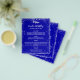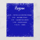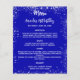 A royal blue background. White text. Decorated with faux silver glitter, sparkles.