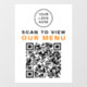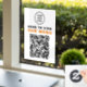 Modern customisable window cling sign for your restaurant or cafe with your logo at the top and a QR code for customers to scan your contactless menu. "Scan To View Our Menu" is in bold black and orange typography (contact us if you would like to change the colours).