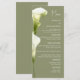 Menus for a modern wedding. Delicate calla lilies in soft green hues are depicted against a light background, creating an atmosphere of sophistication and tranquility. The design is modern, airy, and perfect for a stylish, romantic wedding.