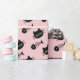 This cute "meow" wrapping paper features a black cat face and fishbone patterns on a light pink background. Personalise it for your needs. You can find matching products at my store.