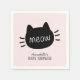 This cute "meow" baby shower paper napkin features a black cat face on a light pink background. Personalise it for your needs. You can find matching products at my store.