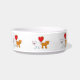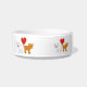 I love the pet bowls I bought for my 3 Granddogs when they come over my house. They are the perfect size to feed them when they are here for a visit. The design of their names on the bowls is great!