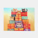 A towering stack of colourful birthday presents guarded by playful, curious cats.