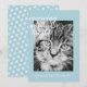Festive cat theme Christmas holiday card with the text meowing spirits bright in elegant script calligraphy and your holiday wishes in stylish modern typography. Simply add your text and upload your favourite photo of your cat. The back of the card has a snowflake pattern on a pastel blue background. Exclusively designed for you by Happy Dolphin Studio. If you need any help or matching products, please contact us at happydolphinstudio@outlook.com.