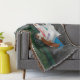 A quality printed throw has its advantages. This is a much finer weave throw than its loopier cousins, and though lighter, it is worth the investment for custom room accessorizing. The back is much prettier than the typical brown, and the fringe on the long sides very vivid, the selvage nicely done. Before photographing, I washed the throw in cold water, delicate, with a thicker woven throw the same size. On tumble dry low, this throw was dry in half the time as the other. This is a very practical quality if you use throws for furniture covers or to wrap up in frequently. The sleekness of the fabric makes it a great layer for accenting or protecting without the feeling of sitting on too much stuff. Perfect for napping or when you feel a light chill coming on. The color printing is beautiful and on this fabric, matched the design and color of my Photoshop image. This is an advantage for blending room fabrics and colors. The fringe on the short sides prints the colors from the design image and therefore varies from the side fringe. I streaked a white fractal line through the plaid pattern to give the illusion of weaving. This printed as crisp as an illusory thread, and put some white in the short side fringe, showing another advantage of print vs loomed- for artistic purposes, line lines, detail, and color integrity can be planned and preserved. My loomed throws have color limitations and more of a needlepoint texture. Print throws reproduce an exact image. The throw felt a little stiff straight out of the package, but this went away in the first delicate wash. Of course I searched the wash water for ink or bleeding and there was none.