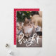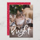 Brighten your loved one's day by sending our Meowy and Bright holiday photo card. The holiday card displays your cat's vertical photo with "Meowy + Bright" in a bold, white hand-lettered script overlay. Personalise the front of the cat photo holiday card by adding your name. The card reverses to feature a simple red and white star pattern.