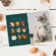 Cute Christmas holiday photo template card for cat owners featuring a illustration of whimsical cats in winter holiday costumes. The text says "meowy + bright."