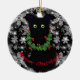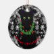 Meowy cat Christmas red green Holly wreath Ceramic Tree Decoration