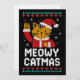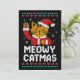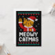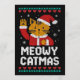 Cute festive cat in knitted look with Santa outfit and winter snow details. Perfect for holiday humor fans who enjoy cozy seasonal themes.
