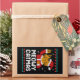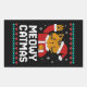 Cute festive cat in knitted look with Santa outfit and winter snow details. Perfect for holiday humor fans who enjoy cozy seasonal themes.