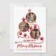 Add your cute cat photos to this personalised pet lover's Christmas card, with the red Christmas tree formed by three photos and paw prints. On the back is a pattern of cat paw prints.