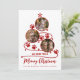Meowy Christmas Cat Pet 3 Photo Red Holiday Card