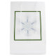 Place your gift in this bag that features the message, "Meowy Christmas" with a photo of a cat with a Christmas decoration on her head. You can change the photo to one of your own if desired. On the back side is a fractal snowflake. Green borders on each side contrast with a white background and with red writing.