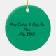 Meowy Christmas | Funny Cat Illustration Ceramic Ornament. "Meowy Christmas." Fun and joyful design for cat owners and lovers!. Add your Cat Name and make it special. Wish your friends, family, and customers a Meowy Christmas with our Cute Cats customisable name ornament ! . Order now.