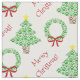 Meowy Christmas Paw Print Holiday Trees & Wreaths Fabric