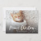 Celebrate the holiday season with this chic holiday card featuring modern script that says "Meowy Christmas" and snowfall.