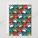 Cute cat photo Christmas card features a photo of your cat and a "Meowy Christmas" greeting framed by Christmas tree doodles and cat paw prints. Reverse side is a charcoal background with cat paw prints in white, red, green and teal. Personalize it with a favorite photo of your cat, and your name(s). Original artwork KL Stock.