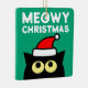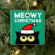 Meowy Christmas tree ornament for cat lovers and pet owners. Cute kitty and humourous Holiday quote. Fun gift idea for animal lover, cat owner, cat person, crazy cat lady, pet lover etc. Green or custom background colour. Funny black cat cartoon with big yellow eyes and Santa hat. Square shape ornament with string. Fun decorations.
