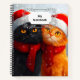 A whimsical and festive scene full of holiday cheer and love with a happy black cat and an orange cat, both wearing Santa hats, surrounded by falling snowflakes.