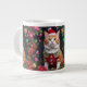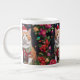 A royal cat wearing a santa Claus costume with a floral background , vintage design