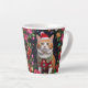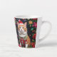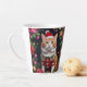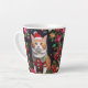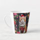 A royal cat wearing a santa Claus costume with a floral background , vintage design