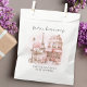 For the parents to-be/mother to-be. Paris life inspired Paris Café street with the Eiffel Tower in the background, baby shower thank you bag. Place some French inspired treats inside the favour bag and hand out to guests as a thank you for attending. A dreamy, romantic and whimsical design. Personalise with the inclusion of your choice of text at the bottom of the design. Part of the 'Bonjour Bébé' baby shower collection.